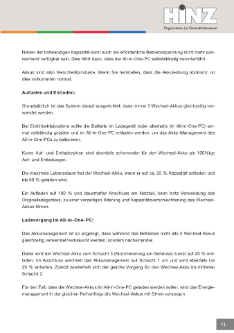 Das Akkumanagement ist so angelegt, dass während des Betriebes nicht alle 3 Wechsel-Akkus