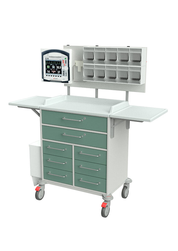 mit 5 Schubladen, Handschuhboxhalter, Desinfektionsmittelspender, Katheterkorb und Halter für Sauerstoffflasche 3-7 l