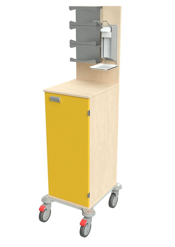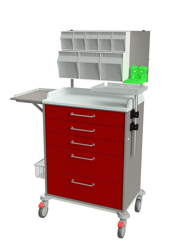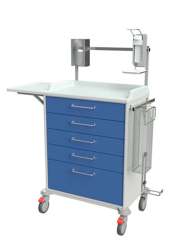 mit 5 Schubladen, Infusionshalter, Mülleimer und Desinfektionsmittelspender