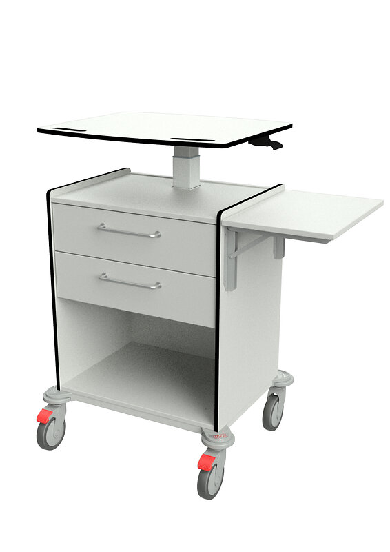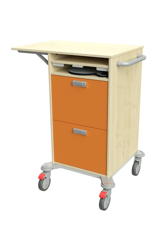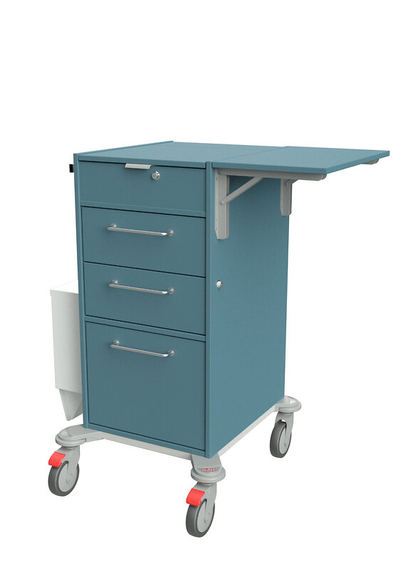 mit 4 Schubladen, abklappbarer Schreibplatte, Desinfektionsmittelspender, Halter für Spritzenabwurf, Müllbehälter, Handschuhboxhalter