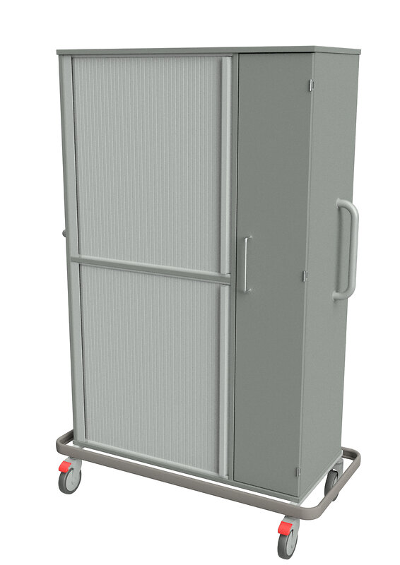 mit seitlicher Andockeinheit für CB-Wäschewagen, abschließbarer Jalousie vor Einlegeböden, Handschuhboxhalter, Desinfektionsmittelspender