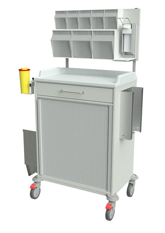 mit 5 Schubladen, Müllbehälter, Handschuhboxhaltern, Desinfektionsmittelspender, Halter für Spritzenabwurf