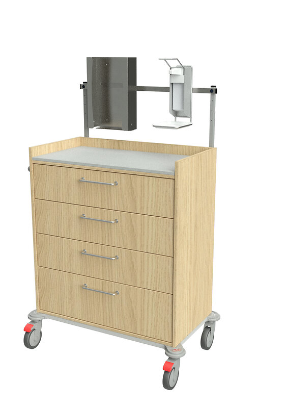 mit 4 Schubladen, Desinfektionsmittelspender, Halter für Spritzenabwurf und Müllbehälter