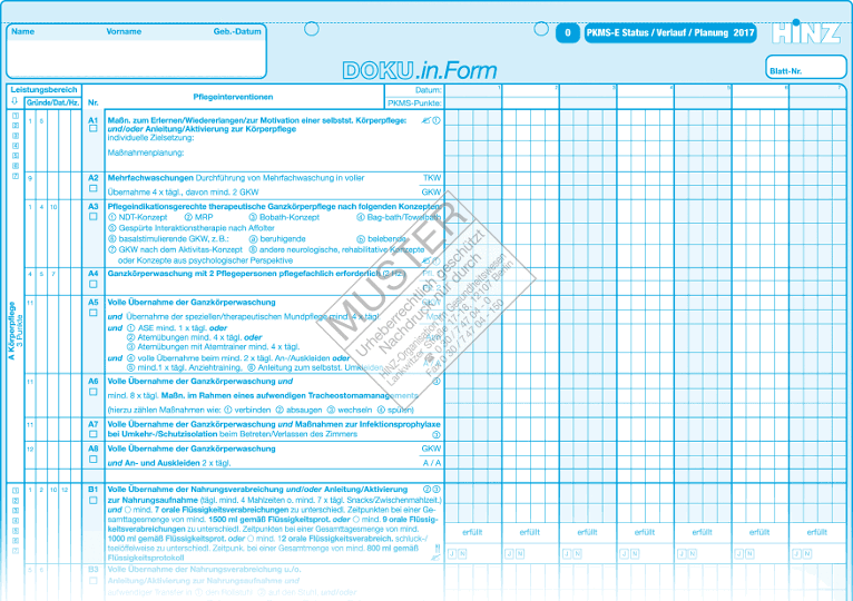 Ob ausgereifte Formulare für die Pflegedokumentation, Kurvenblätter, Laboraufträge mit aufgespendeten Etiketten und Barcodes, Belege für die Leistungserfassung für automatisiertes Einlesen durch Belegleser oder Verwaltungsformulare - bei HINZ erhalten Sie alle Formulare für Ihren Bedarf.