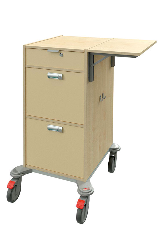 Durch die intelligente und zentrale Unterbringung auf dem Wagen ist das Notebook perfekt geschützt. Während der Benutzung kann der Wagen einwandfrei bewegt werden, ohne dass man Gefahr läuft, dass das Notebook herunterfällt. Durch Verschließen der Klappe, wobei das Notebook gleichzeitig versenkt wird, ist der Zugriff auf Hard- und Software sowie alle Daten bei Nichtbenutzung unmöglich.