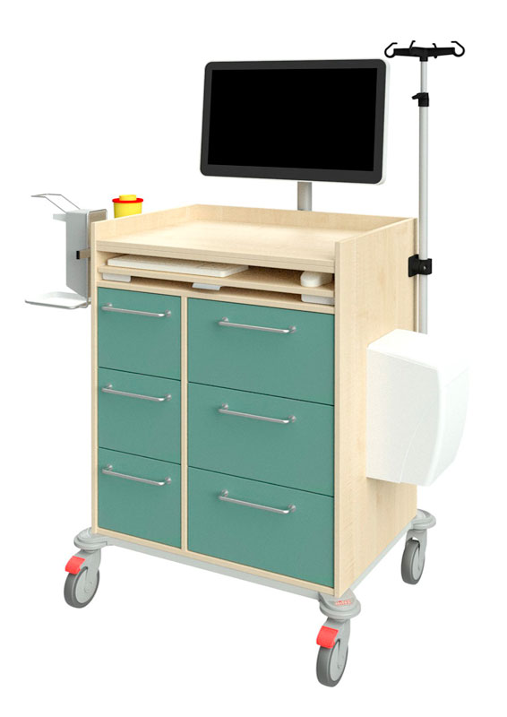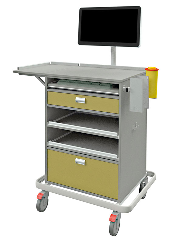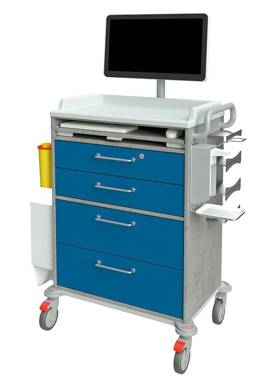 Auf Ihren Wunsch hin statten wir den IT‑Pflegewagen mit einem ISO-Norm-Modulsystem aus. So erschließen Sie sich nahezu unbegrenzte Einsatzmöglichkeiten im täglichen Betrieb Ihrer Einrichtung.