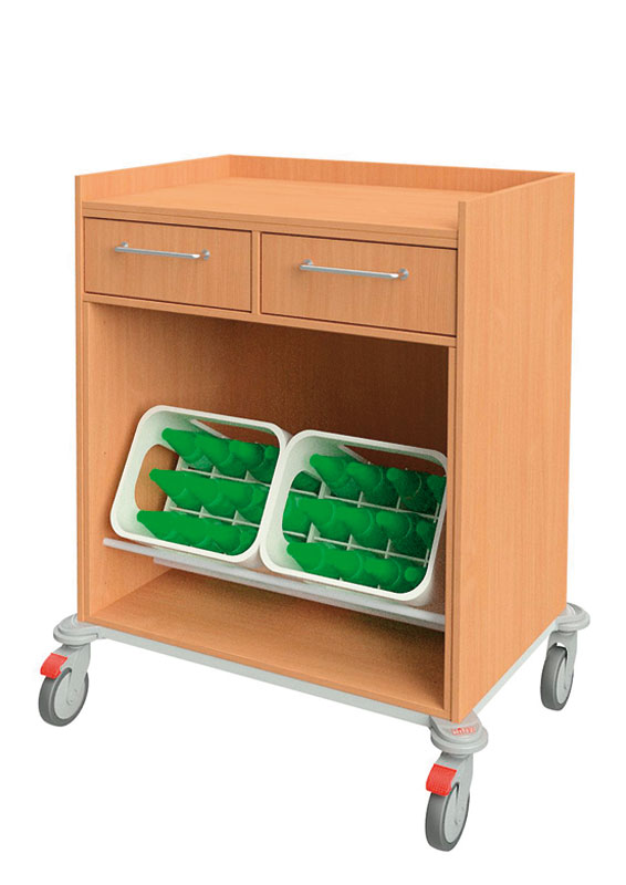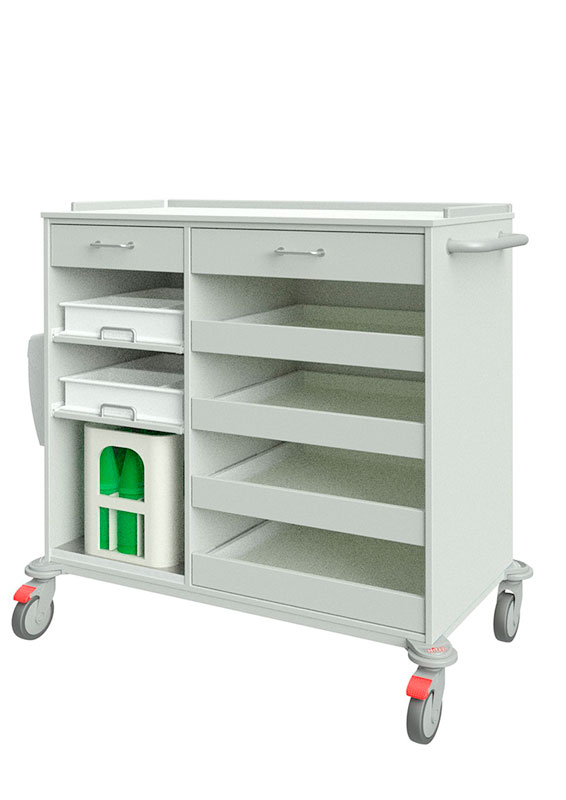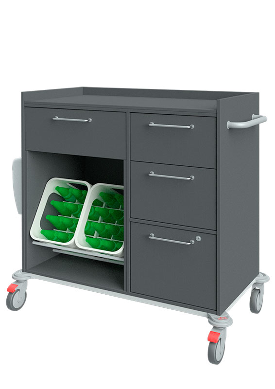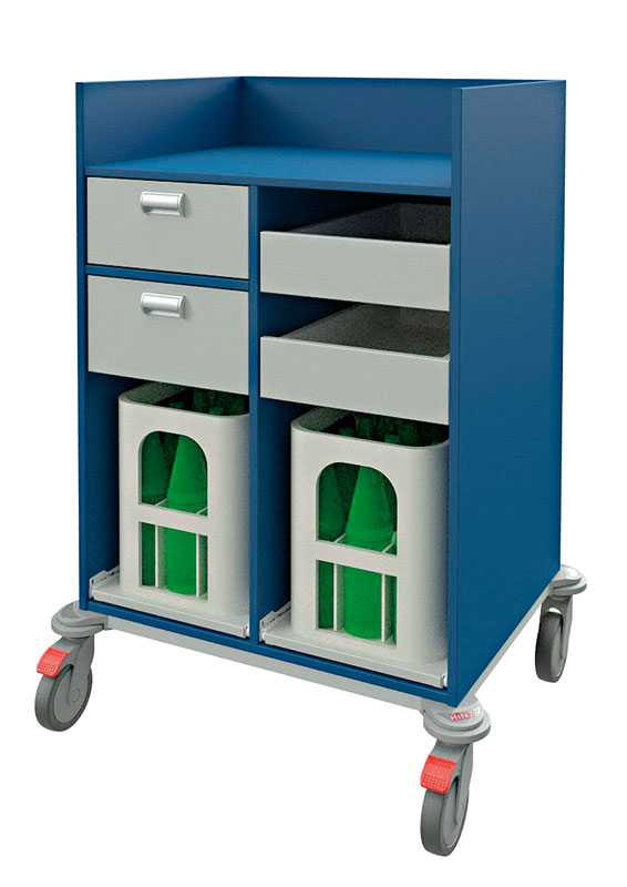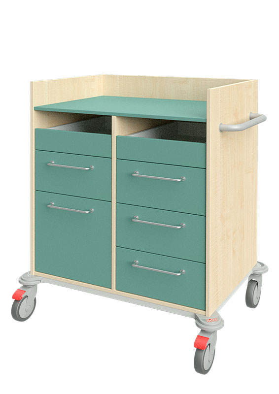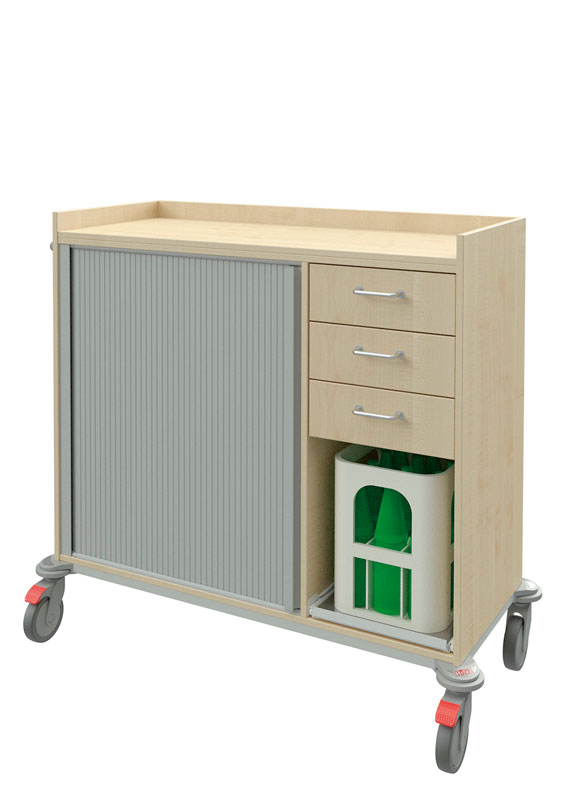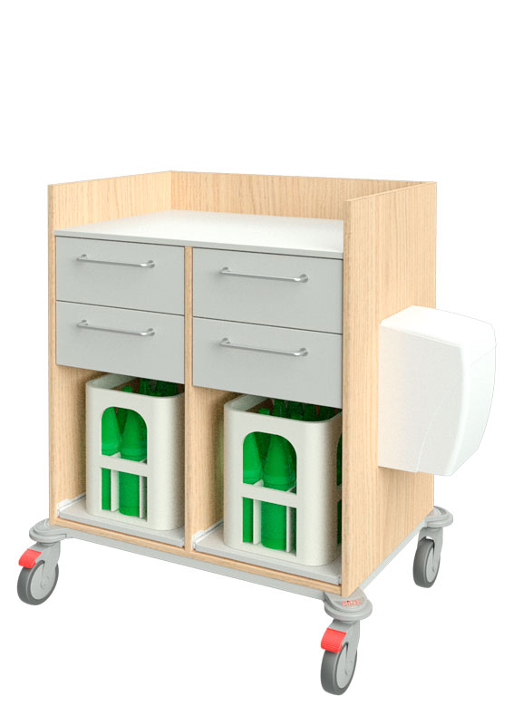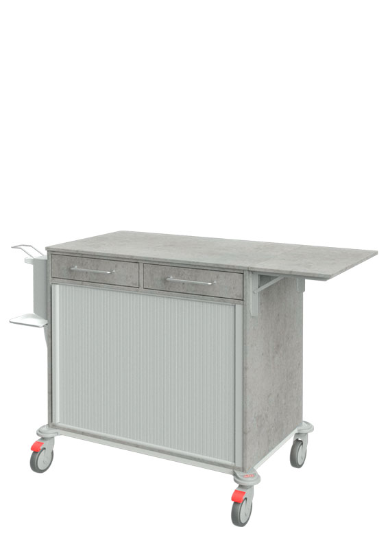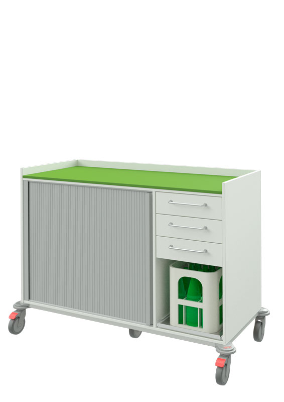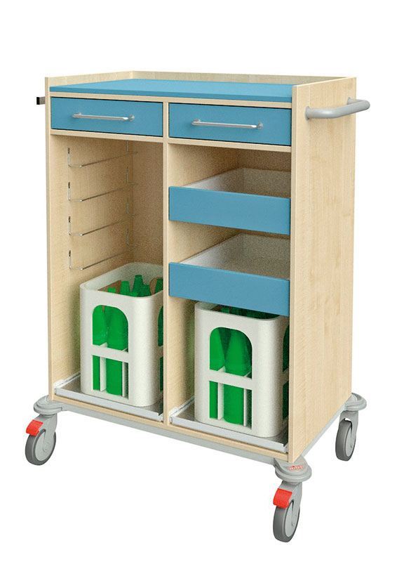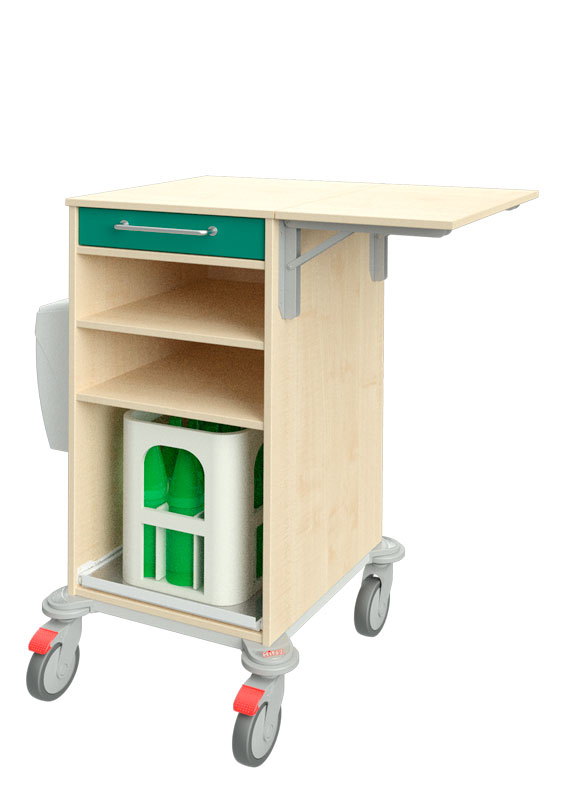 Unsere Servicewagen, Geschirrwagen und Tablettwagen können durch vielfältige Ausstattungsmerkmale individuell eingerichtet werden. Darüber hinaus bieten wir Farben und Dekore für jeden Geschmack. So ist es möglich, dass das Wagendesign auf das Stationsmobiliar abgestimmt werden kann.